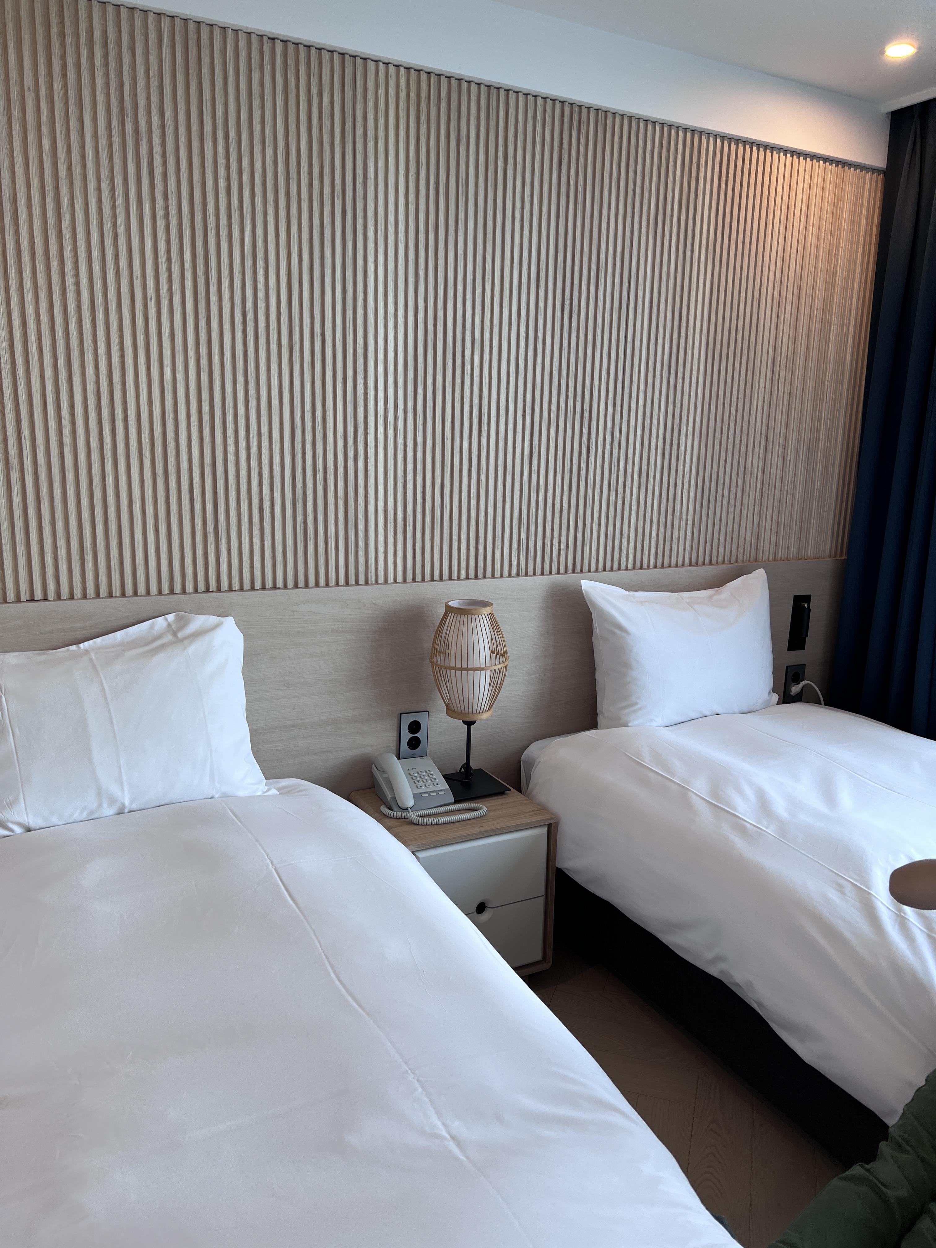 뭐야 뭐야 룸도 너무 너무 색감 예쁘고 디자인도 요즘 유행하는 ~~~ 아 저 침구의 깔끔함 몇일전 묶었던 호텔에서 안좋은 기억이 있어서.... 너무 너무 깨끗하고 좋았어요.